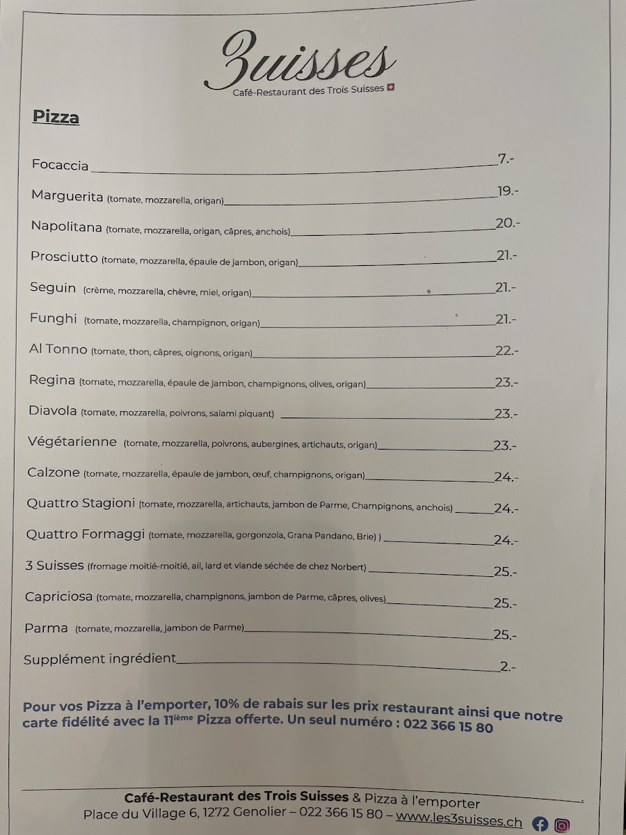 With a friendly ambiance, attentive service, and occasional live music, Café Restaurant des 3 Suisses is not just a meal; it’s a memorable experience. Come and relish the culinary treasures that await!